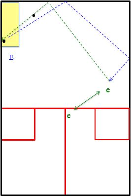 - L’élève (e) se place sur le T face au mur frontal et revient au T après sa frappe.