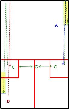 - Le joueur C exécute un amorti en CD et une frappe parallèle en RV.