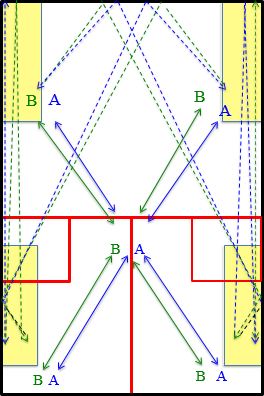 - Joueur A joue une parallèle RV, joueur B joue un double-mur RV.
