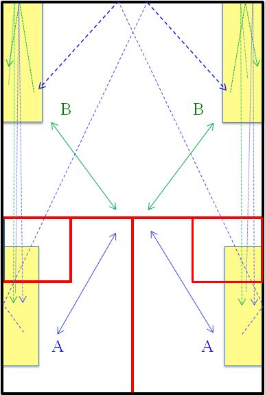 Joueur A joue une parallèle CD pour lui-même, puis joue un double-mur CD, joueur B joue un amorti RV pour lui-même, puis joue une parallèle RV, joueur A joue une parallèle RV pour lui-même, puis un double-mur RV, joueur B joue un amorti CD pour lui-même, puis une parallèle CD, etc…