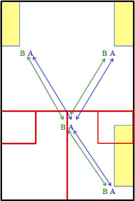 Joueurs A et B jouent sur ¾ de court.