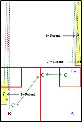 - Le joueur B distribue une balle parallèle vers l’arrière.