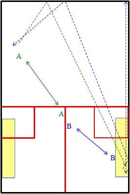 - Joueur B exécute une volée parallèle pour lui-même, puis un double mur sortant.