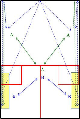 - Joueur B exécute une volée parallèle pour lui-même puis un amorti sur le premier lob, et une volée parallèle pour lui-même puis un double mur sortant sur le lob suivant.