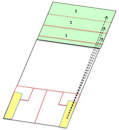 - Ouverture de tamis de plus en plus importante en fonction de la hauteur visée sur le mur frontal.