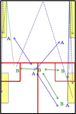- Sur un croisé de l’arrière, le jeu continue en parallèle de l’autre côté.