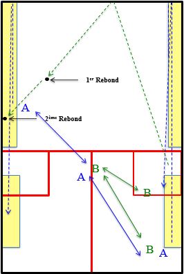 - Les 2 joueurs jouent de l’arrière en parallèle en zone 2 ou 3 du mur frontal.