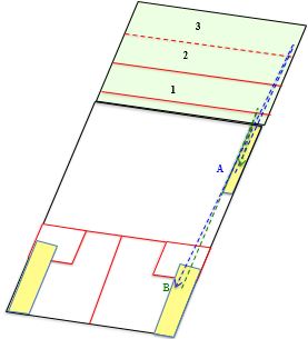 - Joueur B exécute des volées hautes amorties dans la cible avant (Les joueurs changent de rôle toutes les 8 à 10 balles).